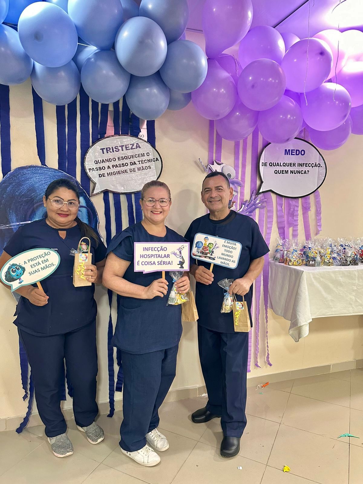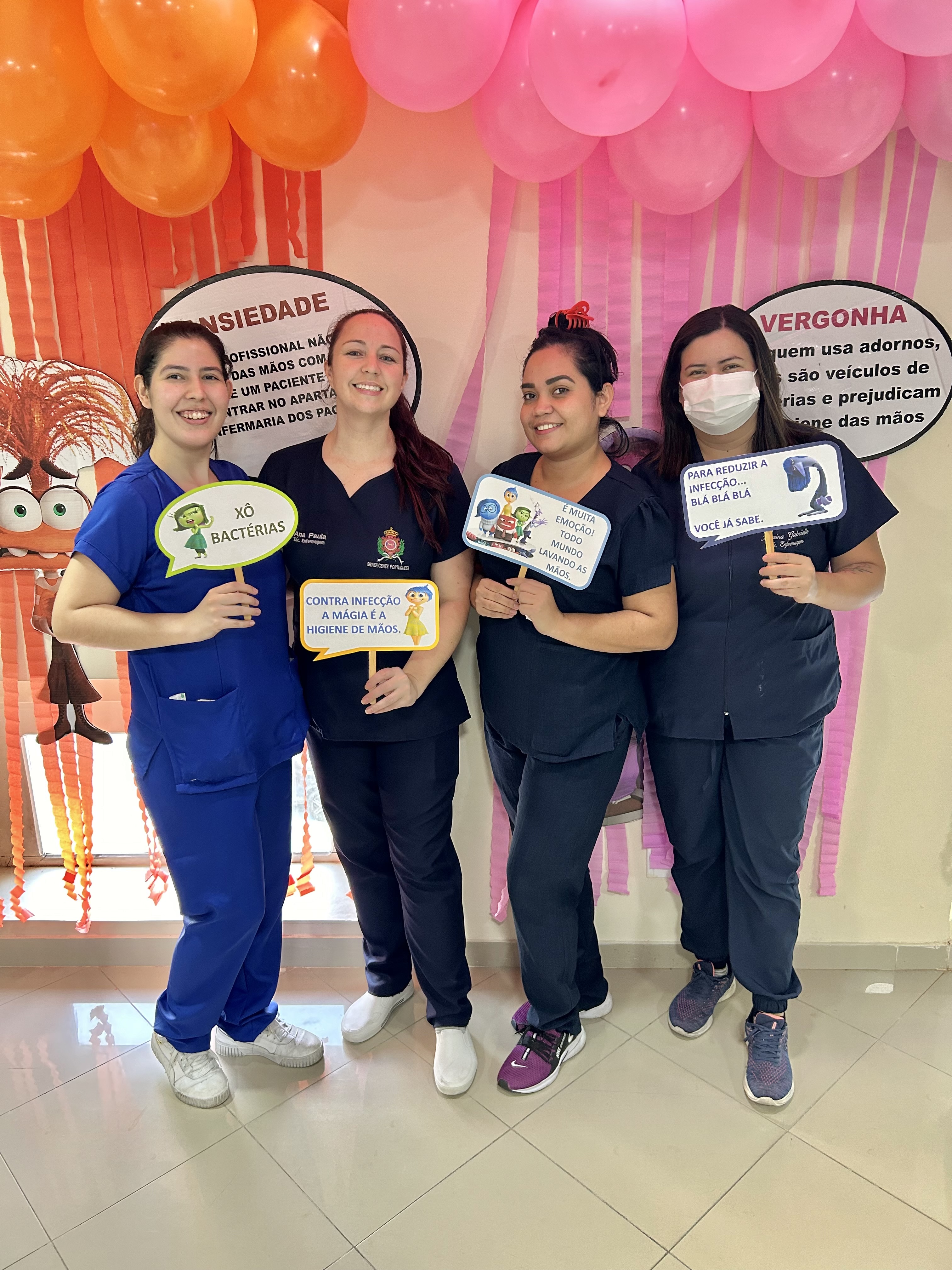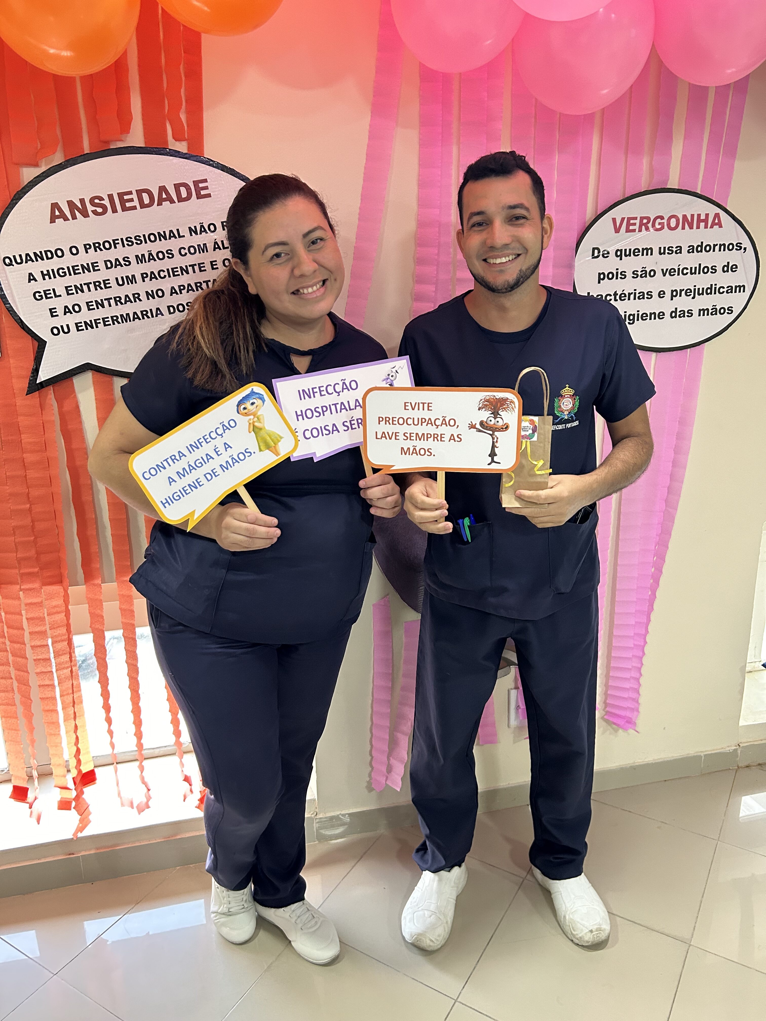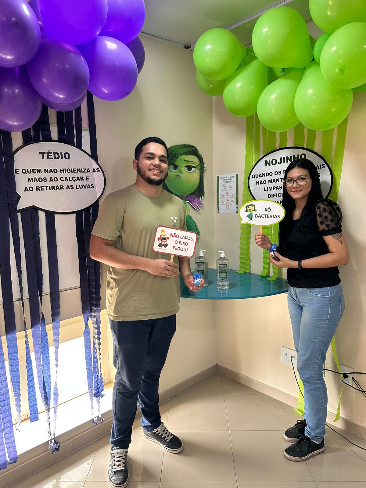 A decoração temática, inspirada no filme “Divertida Mente”, trouxe um toque criativo à campanha. As emoções representadas no filme foram adaptadas para alertar sobre os cuidados com a higiene das mãos. A “inveja”, por exemplo, refletia o desejo de imitar quem já realiza a higienização nos cinco momentos recomendados; o “medo” fazia referência ao temor das infecções; e a “alegria” simbolizava a satisfação em higienizar as mãos corretamente.