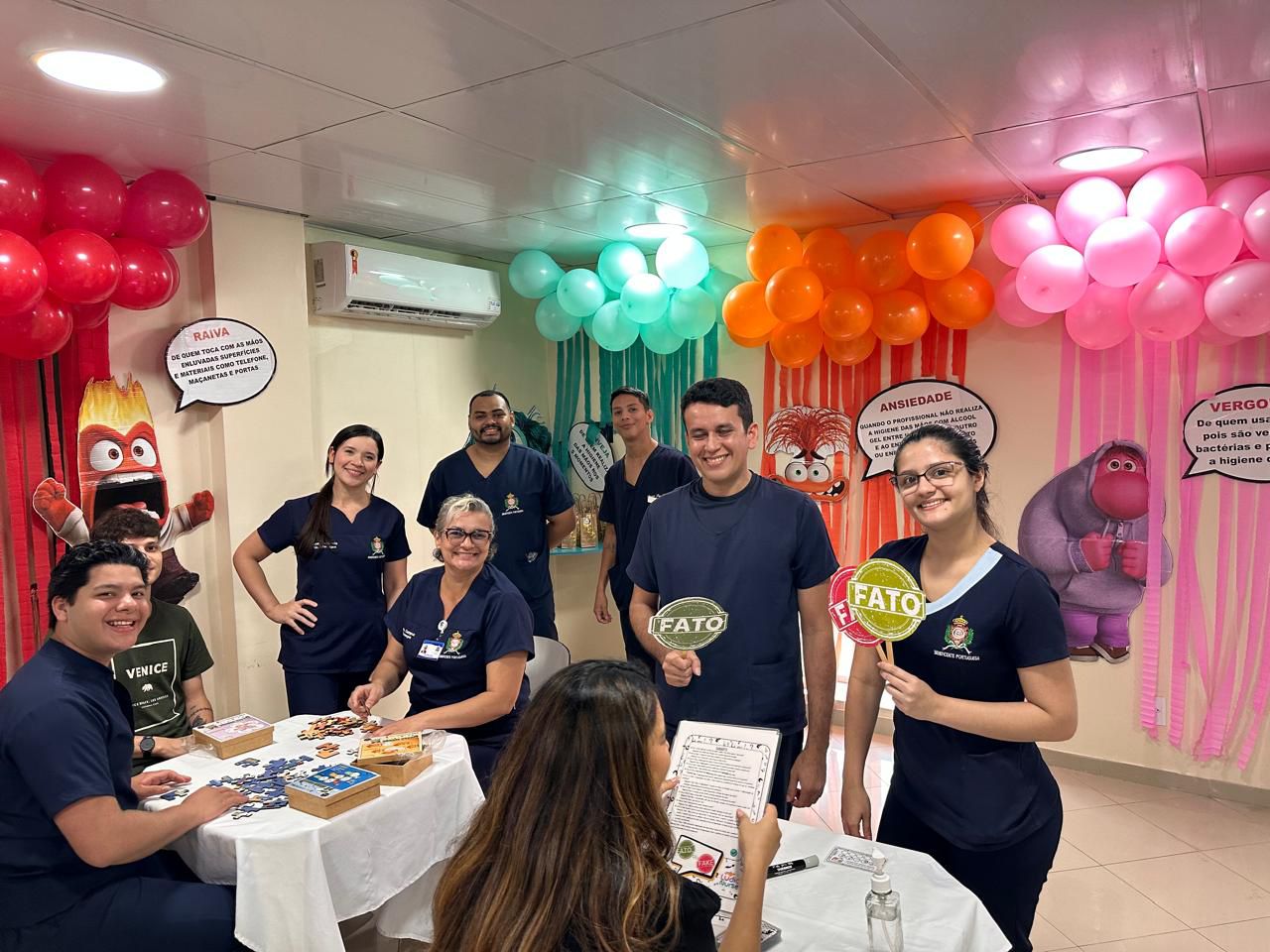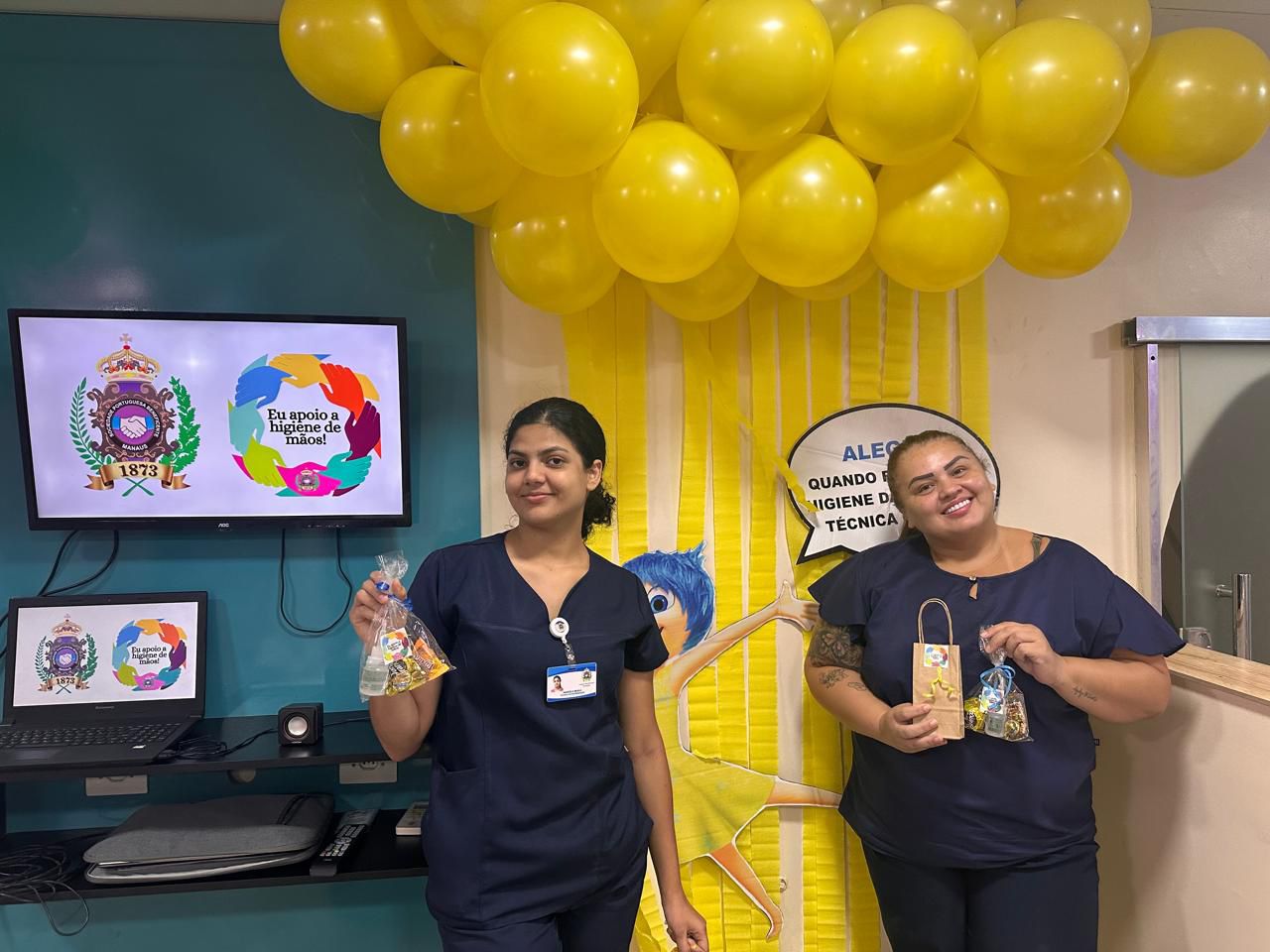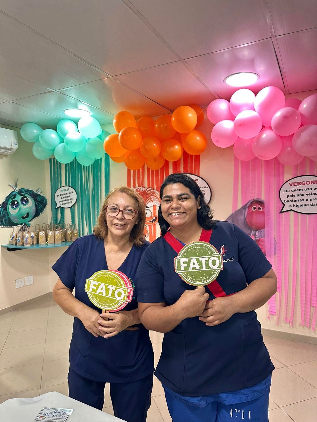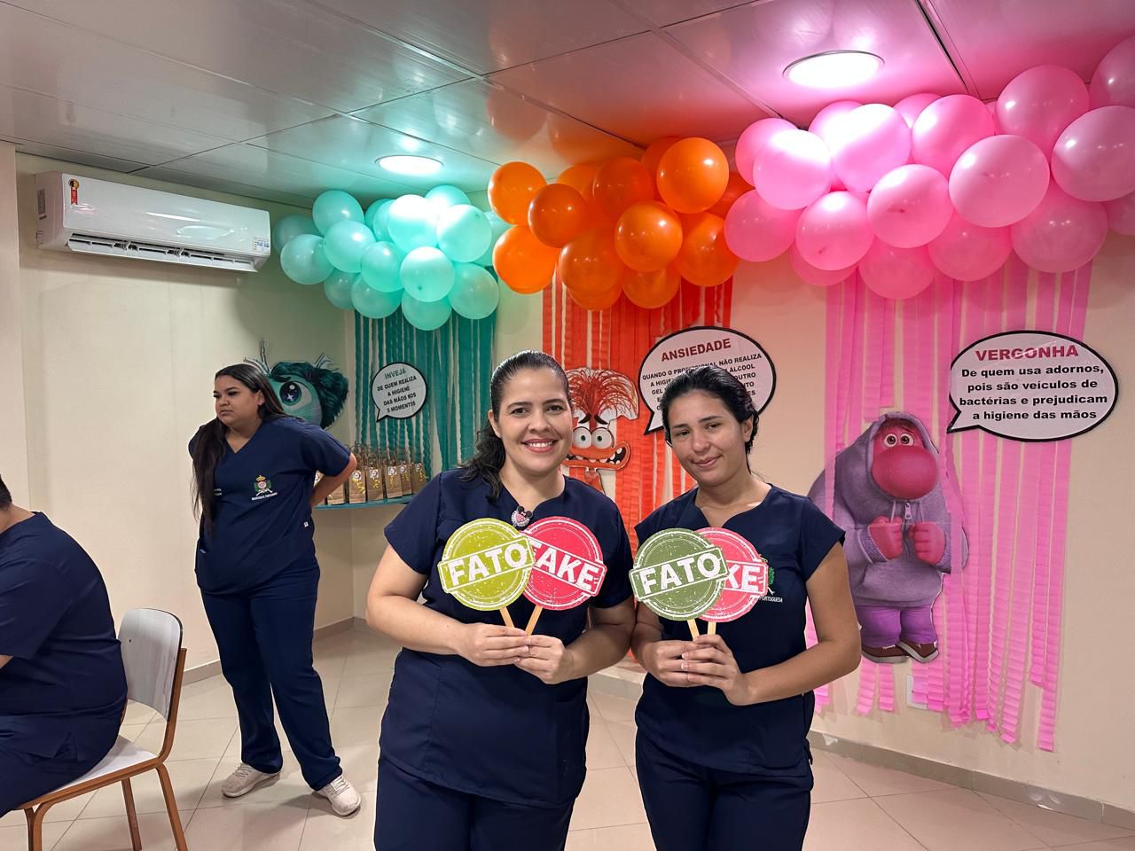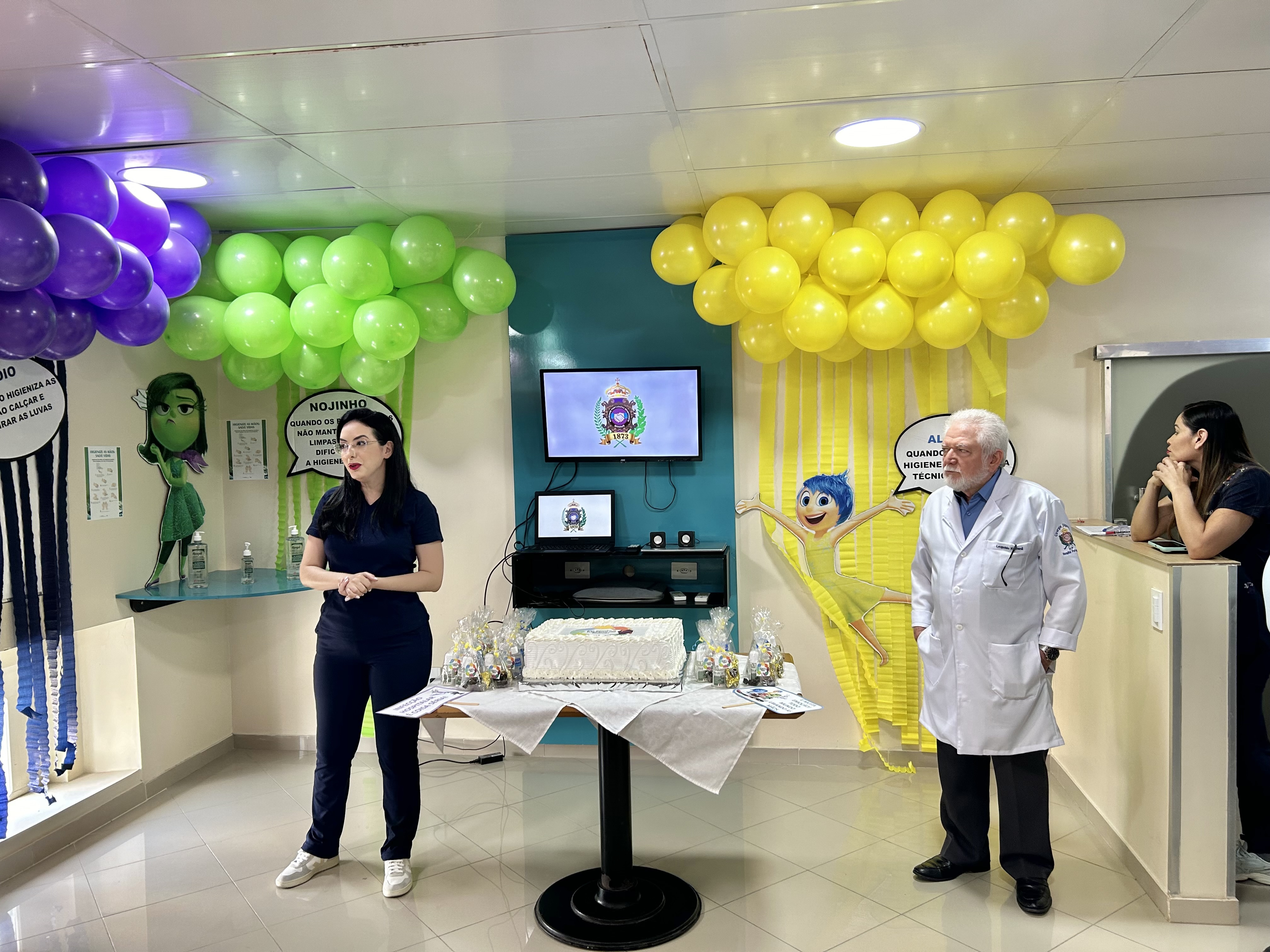 A decoração temática, inspirada no filme “Divertida Mente”, trouxe um toque criativo à campanha. As emoções representadas no filme foram adaptadas para alertar sobre os cuidados com a higiene das mãos. A “inveja”, por exemplo, refletia o desejo de imitar quem já realiza a higienização nos cinco momentos recomendados; o “medo” fazia referência ao temor das infecções; e a “alegria” simbolizava a satisfação em higienizar as mãos corretamente.