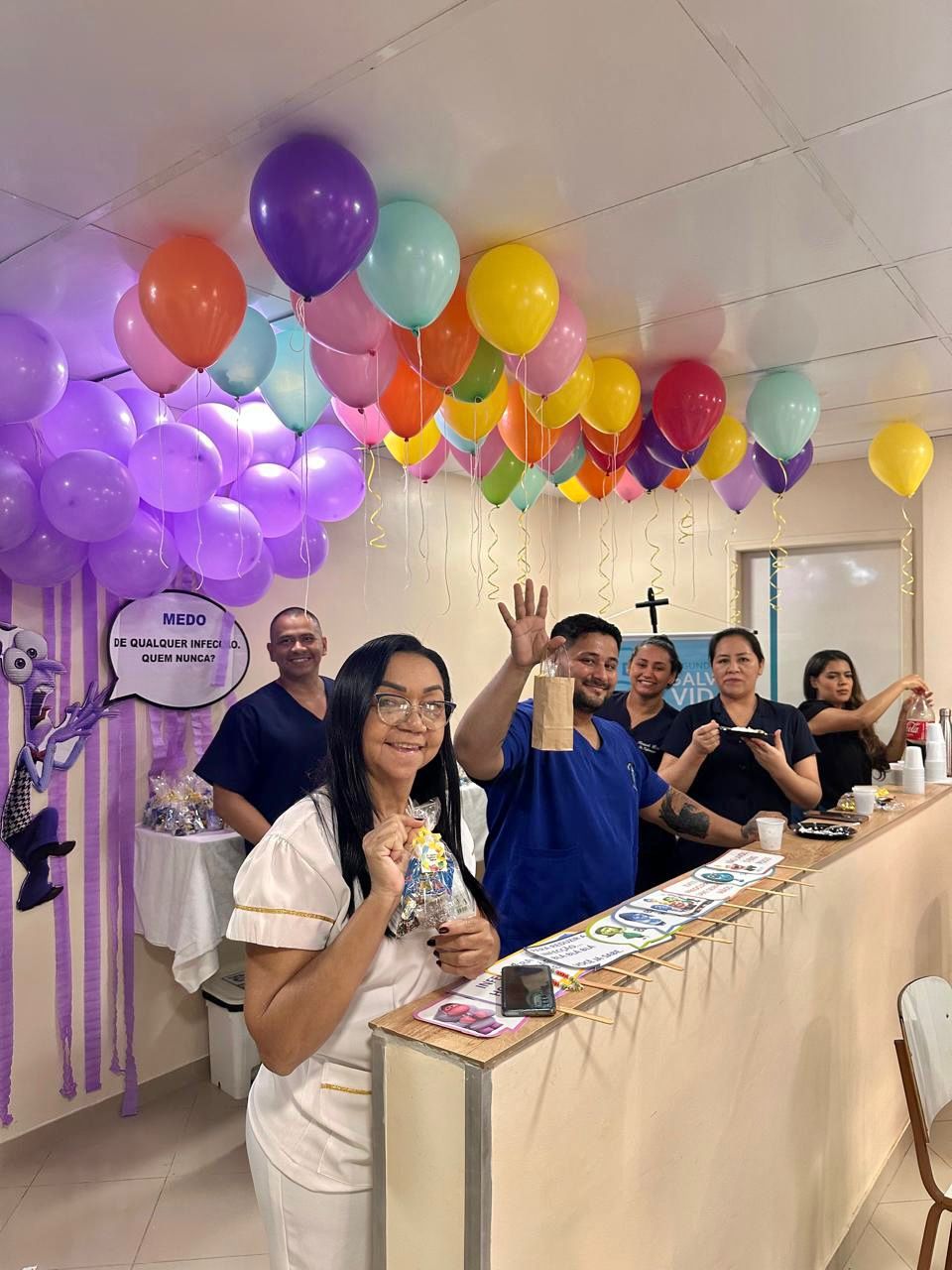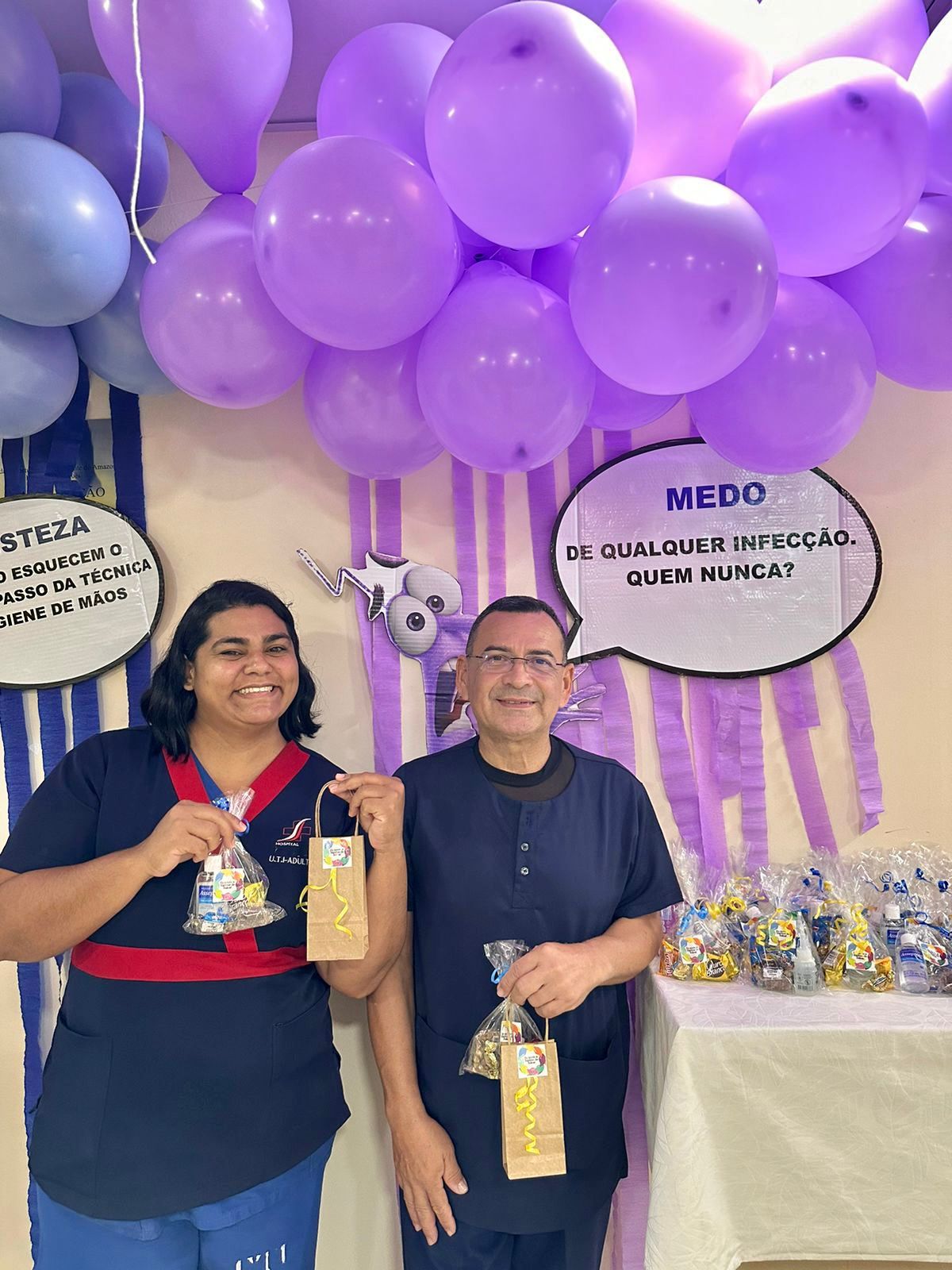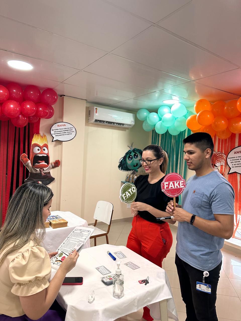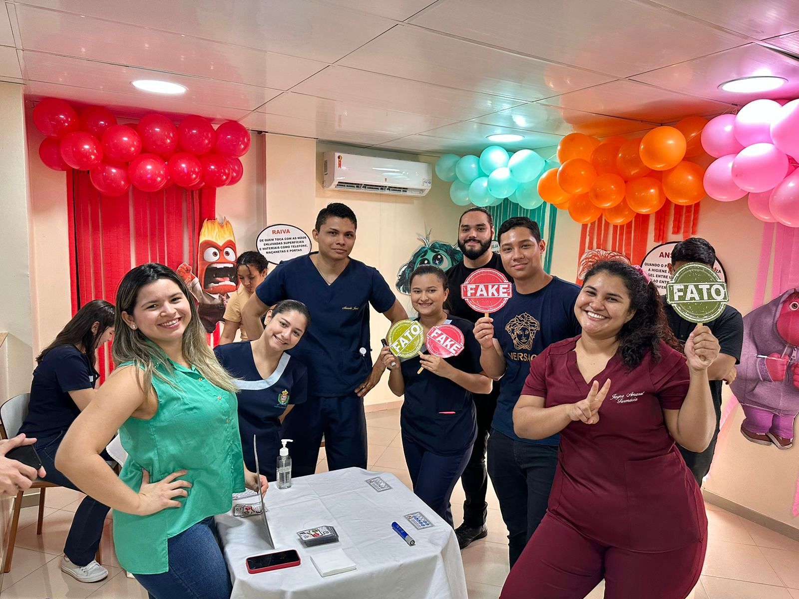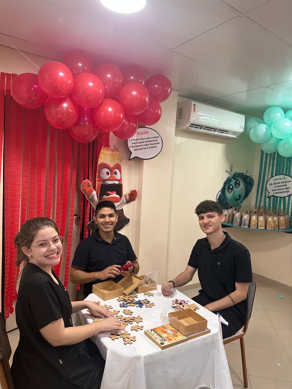 A decoração temática, inspirada no filme “Divertida Mente”, trouxe um toque criativo à campanha. As emoções representadas no filme foram adaptadas para alertar sobre os cuidados com a higiene das mãos. A “inveja”, por exemplo, refletia o desejo de imitar quem já realiza a higienização nos cinco momentos recomendados; o “medo” fazia referência ao temor das infecções; e a “alegria” simbolizava a satisfação em higienizar as mãos corretamente.